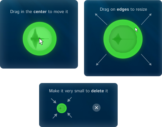 This is where fish spawn from. When you drag it around, it will attract the fish. The faster it is moved, the more the fish will be attracted. Note that if you turn down Visual Range, the fish further away won’t be able to see the emitter.
